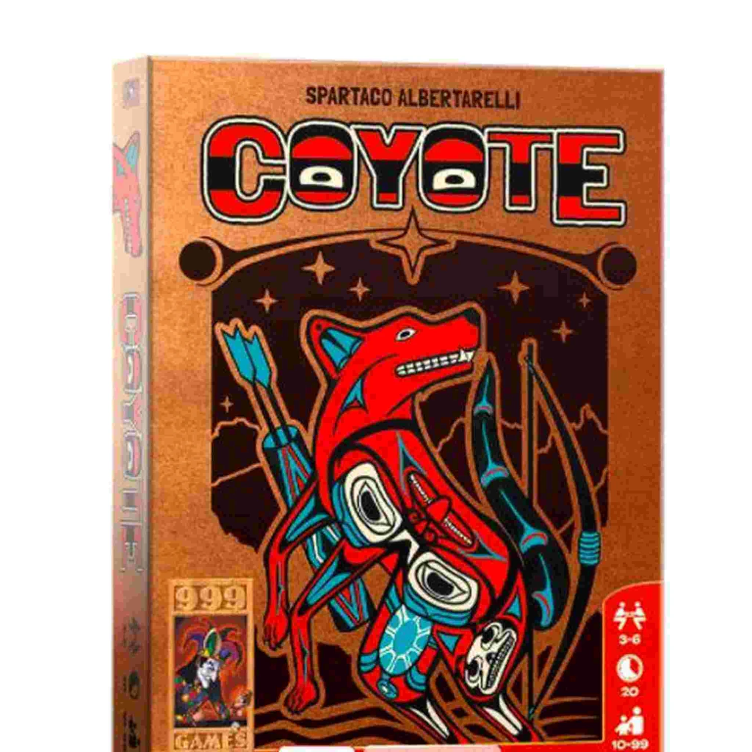 Beschrijving van Coyote – 999-COY01 : Coyote daagt je uit! Coyote is zijn bezittingen kwijt geraakt en daagt je met een blufkaartspel uit om deze terug te verdienen. Als startspeler schat je de waarde van de kaarten in het spel en breng je een bod uit. Omdat niet alle kaarten hun waarden prijsgeven, zul je moeten bluffen. De volgende speler zal een hoger bod uit moeten brengen of je bod moeten uitdagen. Indien je uitgedaagd wordt en je hebt overboden, verlies je van de uitdager. De speciale kaarten in het spel kunnen de waarde van de kaarten in het spel beïnvloeden, en met een “spiekkaart” mag je geoorloofd spieken, als je daarna tenminste een hoger bod uitbrengt. Ben jij de grootste bluffer!