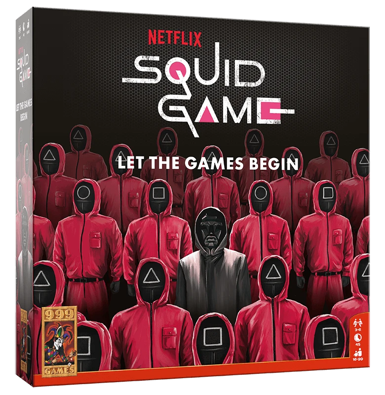 Beschrijving van Squid Game – 999-SQU01 : Je bent verzeild geraakt in Squid Game. Je hebt een team van medestanders gevonden dat bereid is elkaar te steunen. Maar ook je tegenspelers hebben ieder hun eigen team. En de concurrentie is moordend… In deze spannende partygame zijn de zes beruchte “kinderspelletjes” van de Netflix-serie vertaald naar kaartspellen. Deze kaartspellen draaien om bluf, push your luck en tactiek. Leid je team door de zes spellen, waarbij je moet proberen om zoveel mogelijk teamleden in leven te houden. De teamleden die een spel overleven gaan door naar het volgende spel. Overleef met minstens één teamlid tot het einde aan toe om Squid Game te winnen. Dit zijn de spellen: Red Light Green Light – In dit spel moet je jouw teamleden naar de overkant van het speelbord laten lopen. Het cijfer op de kaart die je per beurt speelt, geeft aan hoeveel stappen je teamleden mogen doen. Draai daarna een kaart van de gevreesde pop om. Als die kaart hetzelfde cijfer laat zien, wordt jouw voorste teamlid uitgeschakeld. Dalgona – Verdeel je teamleden over vier verschillende tegels met elk een eigen symbool. Draai dan kaarten om. Als je een kaart omdraait met een van de symbolen op de tegels, mag je een teamlid op die tegel een stap verder op de tegel zetten of misschien zelfs van de tegel redden. Draai je een kaart om met het woord “CRACK!”? Dan wordt een van je teamleden uitgeschakeld. Tug of War – Op het bord worden drie verschillende touwtrekwedstrijden gespeeld. Verdeel zo strategisch mogelijk je teamleden over het bord. De winnende partij per wedstrijd overleeft deze ronde. De teamleden van de verliezende partij worden uitgeschakeld. Maar hier is de twist: iedere speler zet om beurten een teamlid en teamleden van verschillende teams mogen in dezelfde partij worden gezet. Hoe werk jij met je tegenspelers samen? Marbles – Maak koppels tussen alle overgebleven teamleden in het spel. Per koppel wordt met knikkers een van twee spelletjes gespeeld: “even” of “oneven” raden of een knikker zo dicht mogelijk tegen een muur aan gooien. Winnende teamleden mogen door. Verliezende teamleden worden uitgeschakeld. Glass Bridge – Speel kaarten om je teamleden over de glazen brug te verplaatsen. Kies je verkeerd, dan valt je teamlid door het glas en wordt het geëlimineerd. Speel de 0-kaart om teamleden van een tegenspeler zonder mededogen vooruit te duwen. Squid Game – Ren, blokkeer, duw of steek desnoods teamleden van je tegenspelers neer om koste wat het kost het einde van het Squid Game-veld te bereiken. Want nu spant het erom. Wie overleeft Squid Game? Squid Game is een razend spannende partygame, waarmee je de zenuwslopende ervaring van de Netflix-serie nu veilig en wel thuis kunt beleven. Bondgenootschappen sluiten, elkaar aftroeven en in de rug steken, het kan allemaal. Squid Game staat bol van de interactie en staat garant voor een dodelijk hilarische spelbeleving.