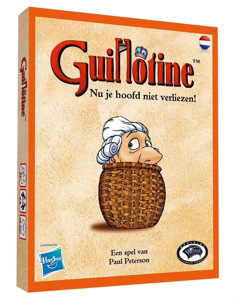 Guillotine is een kaartspel over de Franse Revolutie en zit boordevol zwarte humor. Spelers bedienen de Guillotine en willen de meest waardevolle Edellieden onthoofden. Omdat het onthoofden van bijvoorbeeld Marie-Antoinette meer punten oplevert dan bij een Graaf, kunnen de spelers actiekaarten uitspelen om zo de volgorde van de Edellieden voor de Guillotine te veranderen. Zorg dat jij de andere spelers met een ‘hoofdlengte’ voor blijft en win!… Leve de Revolutie!