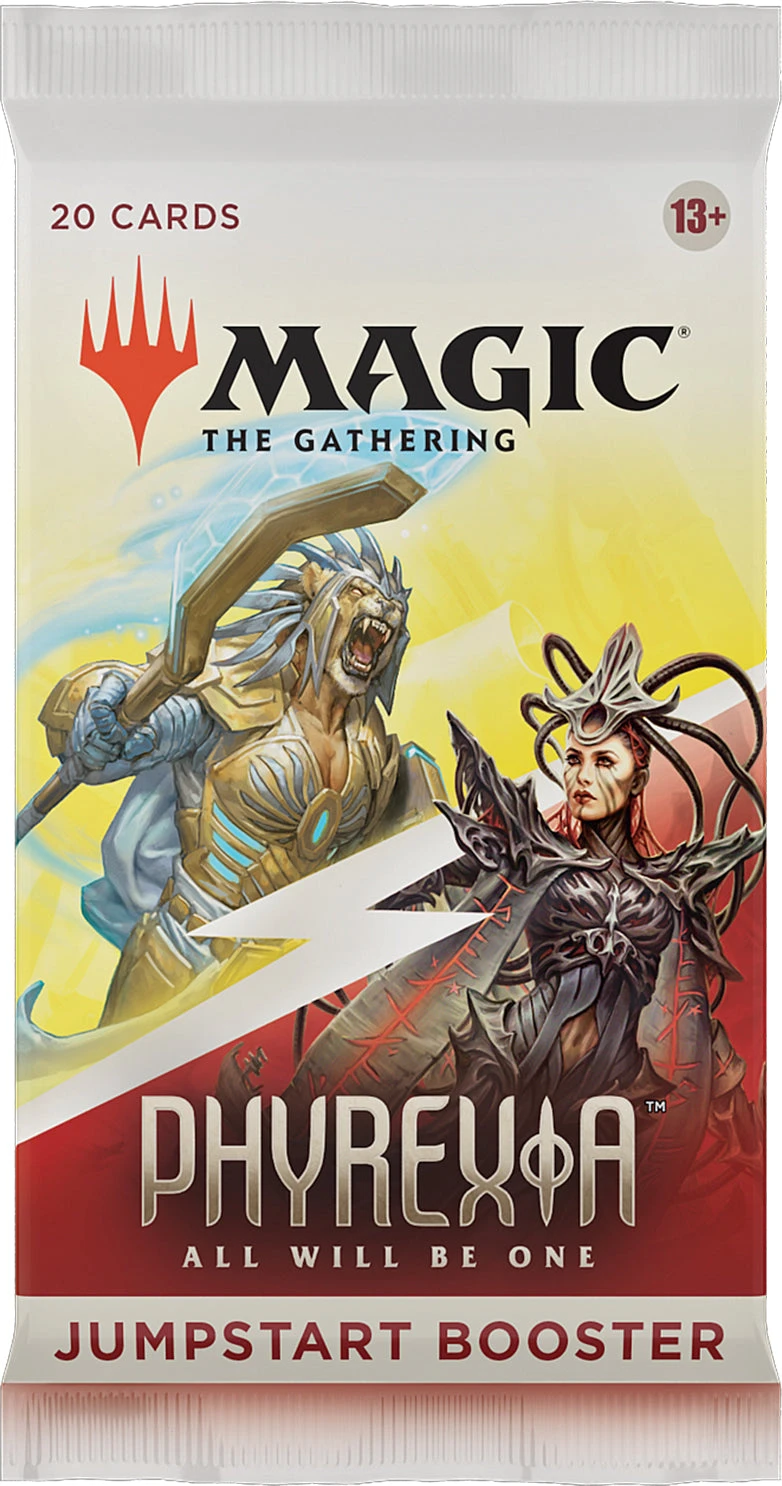 Phyrexia: All Will Be One Jumpstart Boosters. Each booster has a theme. Just grab two packs and shuffle them together for wild combos and a unique gameplay experience that’s great for a quick game, for long-time fans looking to jump back in, or for a fun, simple way to learn the game. Phyrexia: All Will Be One Jumpstart Boosters contain 20 Magic cards (including all the lands you need to play). In every pack, you’ll find 2 Rare cards (1 Rare card designed for Jumpstart boosters and 1 Rare or Mythic Rare from the main set), and 2 Land cards with a shining Traditional Foil treatment. If you’re looking to maximize your mashups, Phyrexia: All Will Be One Jumpstart Boosters can be combined with packs from any other Jumpstart product. 2 Traditional Foil Land cards in every pack 2 Rare cards in every pack—1 Rare or Mythic Rare + 1 Rare card designed for Jumpstart boosters Each pack has 1 of 5 possible themes and each theme comes in 2 variants—mix and match to achieve perfection Grab 2 Jumpstart packs, shuffle, and you’re ready to rumble