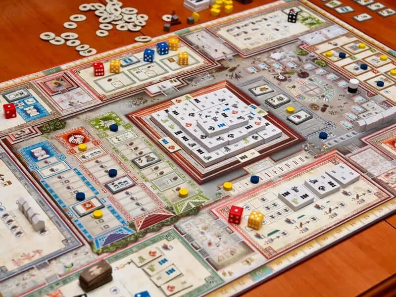 Beschrijving van Teotihuacan: City Of Gods – En – NSK024 : Teotihuacan: City of Gods is a strategic game of resource and worker management: