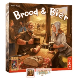 Beschrijving van Brood & Bier – 999-Bro01 – 999 Games – 999-BRO01 : Brood en Bier is een strategisch spel voor 2 spelers. Door kaarten te spelen oogst je grondstoffen, verbeter je je dorp en verkoop je bier en brood. Elke kaart kan op drie verschillende manieren worden gebruikt. Schuif de kaart boven het speelbord voor een oogst, onder het speelbord voor een uitbreiding van het dorp of leg de kaart af om bier en brood te verkopen. De manier waarop je kaarten krijgt is afhankelijk van de ronde. Tijdens een sterk jaar geef je handkaarten over en weer door, waarbij je telkens een kaart kiest om te spelen. Tijdens een mager jaar moet je het doen met de kaarten die je krijgt, al mag je beperkt kaarten ruilen met het ruilkaartenveld. Wie na zes rondes het meeste bier of brood heeft geproduceerd wint. Maar er zit een klein addertje onder het gras. Waar je het minste aantal van hebt geproduceerd, bepaalt jouw eindscore. Je verliest dus als je enorm hebt ingezet op brood, terwijl je productie qua bier erg beperkt is gebleven. Brood en Bier is als strategisch spel voor twee spelers dus echt een uitdaging! Het spel staat bol van de spelersinteractie. Elke ronde moet je bepalende keuzes maken, die directe gevolgen hebben voor de volgende ronde. Bovendien is Brood en Bier fraai geïllustreerd door Michael Menzel (De Legenden van Andor, De Avonturen van Robin Hood). Een aanrader voor iedereen die een groot spel in een kleine doos zoekt!