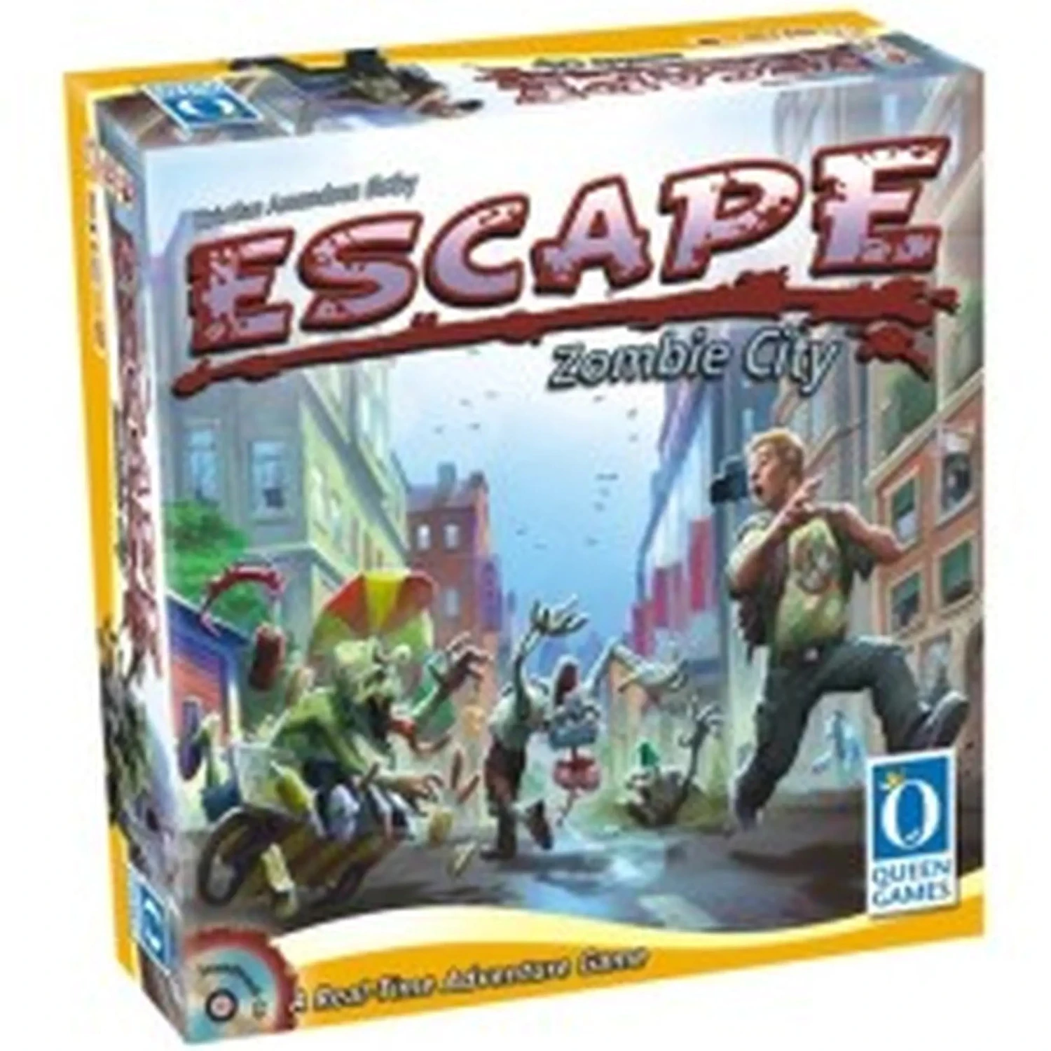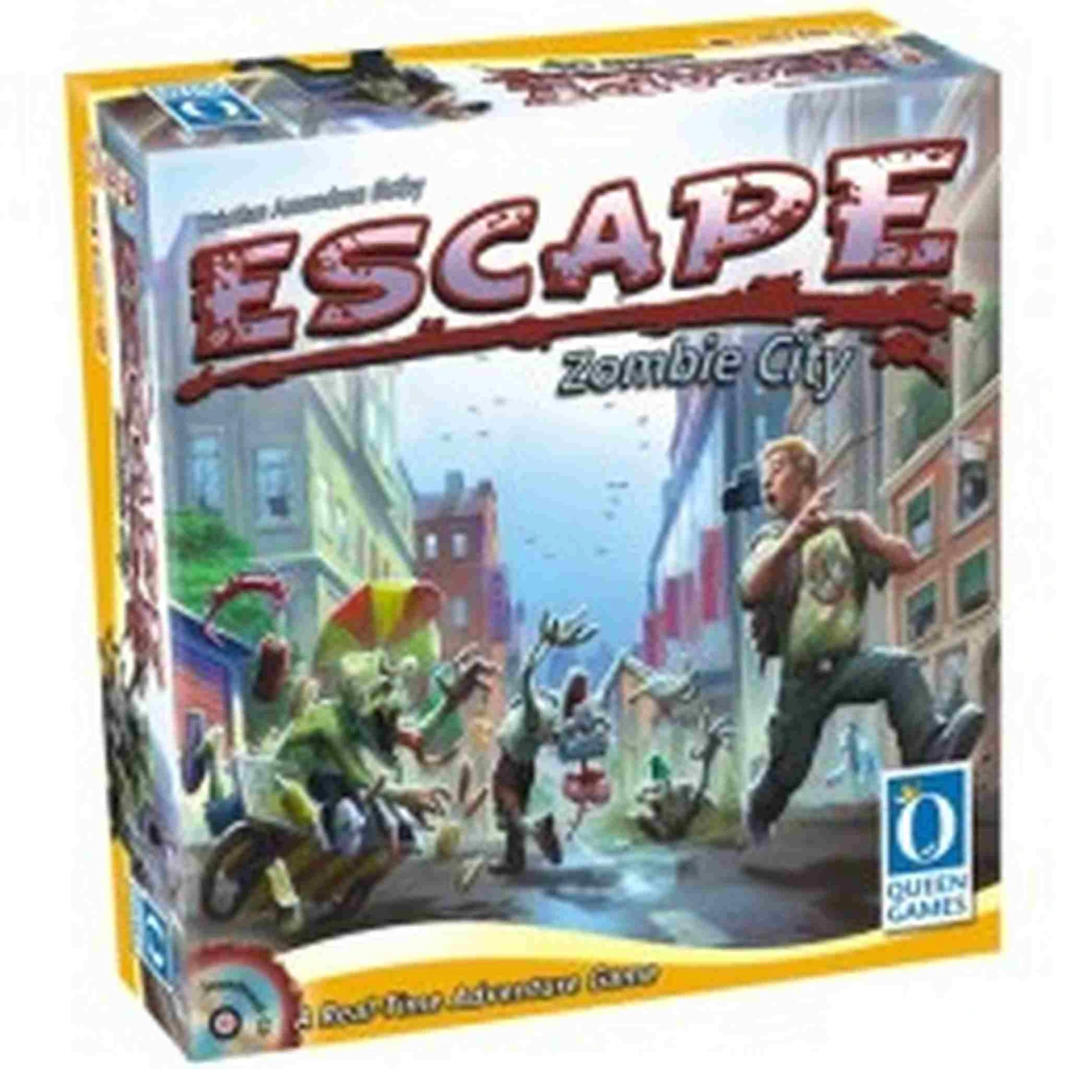 Beschrijving van Escape Zombie City, Queen G. 10031 En – 795032 : Escape Zombie City, Queen Games. In Escape: Zombie City: u en uw collega-spelers zijn overlevenden van de zombie apocalyps, verstopt in een kerk van een grote stad. Alles gaat goed , maar dit veranderd zodra een grote groep zombies de stad in komt en je brein willen hebben. Je enige kans is het verzamelen van benodigdheden, start je VW Microbus en ga zo snel mogelijk weg uit Dodge City! Escape: Zombie Stad wordt gespeeld met een soundtrack die vijftien minuten duurt. Na die tijdsduur, zijn de hordes zombies te groot te geworden om te verslaan en verlies je je verstand, letterlijk… Voor 2 tot 4 spelers. Vanaf 10 jaar. Speelduur 15 minuten. :: Queen Games