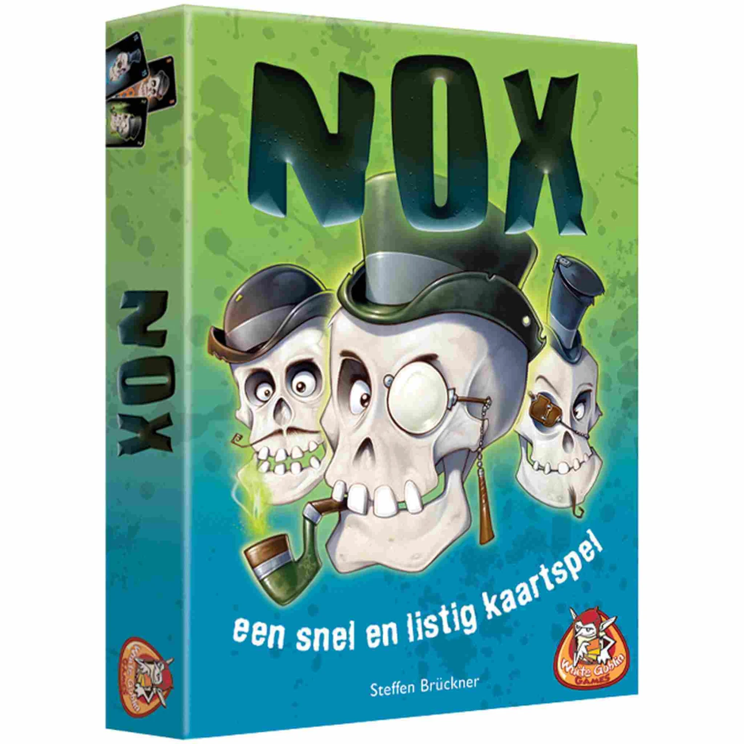 Beschrijving van Nox – WGG1726 : Elke nacht hebben Alphonse, Ramon en Jack ruzie over wie van hen de meest gewiekste schurk is. Wie doorkruist de plannen van zijn medespelers en behaalt daarbij de meeste punten?Speel elke beurt één kaart bij jezelf voor flink wat punten, of bij een tegenstander om aan zijn score te rammelen. Let wel goed op dat je alle drie de kleuren hebt liggen aan het eind van het spel, anders vang je alsnog bot!