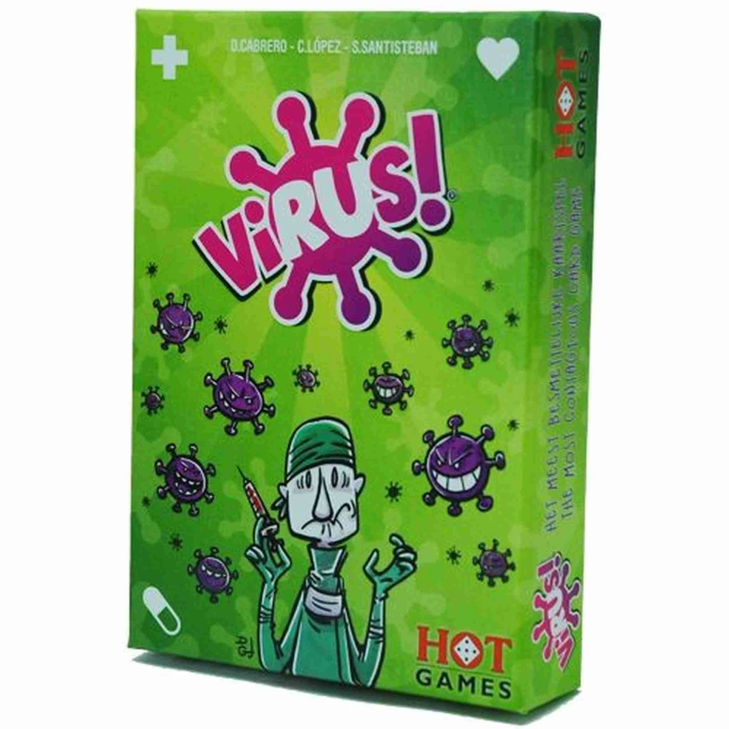 Beschrijving van Virus!- Meest Besmettelijke Kaartspel Nl – 793966 : Virus! – het meest besmettelijke kaartspel. NL/ EN Er wordt alarm geslagen in het ziekenhuis zodra het laboratorium er -iets te laat- achter komt dat de viruscontainers niet zo leeg waren als ze dachten. Het is jouw missie om als eerste deze uitbraak te stoppen, de virussen te vernietigen, en een gezond lichaam zonder virussen te krijgen. Voorkom de verspreiding van deze verschrikkelijke virussen. Probeer als eerste speler vier gezonde organen (zonder virussen) in je “lichaam” te hebben Een speler kan in zijn beurt: > Eén tot drie kaarten afleggen en zijn hand tot drie kaarten aanvullen. > Eén kaart uitspelen, dit mag zijn: een gezond orgaan in zijn lichaam plaatsen. een virus op een orgaan bij een andere speler plaatsen. Plaats je een tweede virus op hetzelfde orgaan, dan wordt dit orgaan verwijdert een medicijn op een eigen orgaan plaatsen (ter vaccinatie tegen andere virussen) of om een reeds geplaatst virus te verwijderen. Plaats je een tweede medicijn op een orgaan dan is dit orgaan immuun tegen andere virussen. > Een “dokter” kaart uitspelen, dit zijn speciale actie kaarten waarbij je organen kunt stelen, omruilen, virussen verspreiden en handkaarten van andere spelers afleggen. Spelregels: NL/ EN. Voor 2 tot 6 spelers. Leeftijd vanaf 8 jaar. Speelduur circa 20 minuten. Uitegever: HOT Games